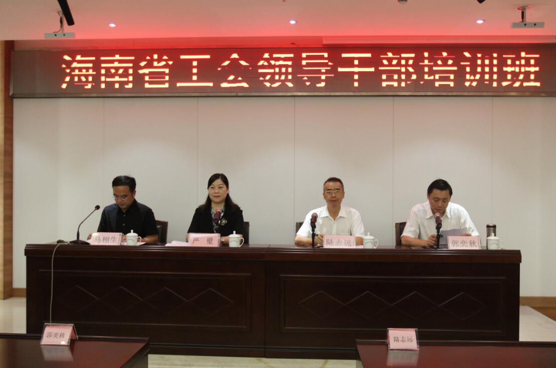 9月25至30日,海南省总工会在广东省总工会干部学校举办全省工会领导干部培训班。省人大常委会副主任、省总工会主席陆志远出席开班仪式并作开班动员讲话。省总工会党组成员、副主席郭奕秋,广东省总工会组织部部长严壁,广东省总工会干部学校党委书记、校长马栩生出席开班仪式。