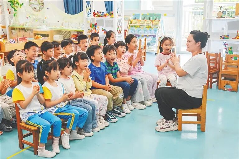 三亚市第一幼儿园的小朋友们在课堂上开心做游戏。海南日报全媒体记者 王程龙 摄