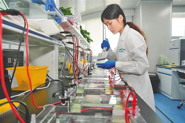 海口高新区药谷工业园的海南苏生生物科技有限公司研发实验室内,研发人员正在测试。海南日报全媒体记者 袁琛 摄