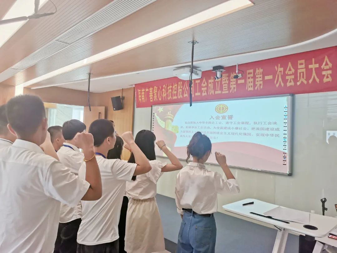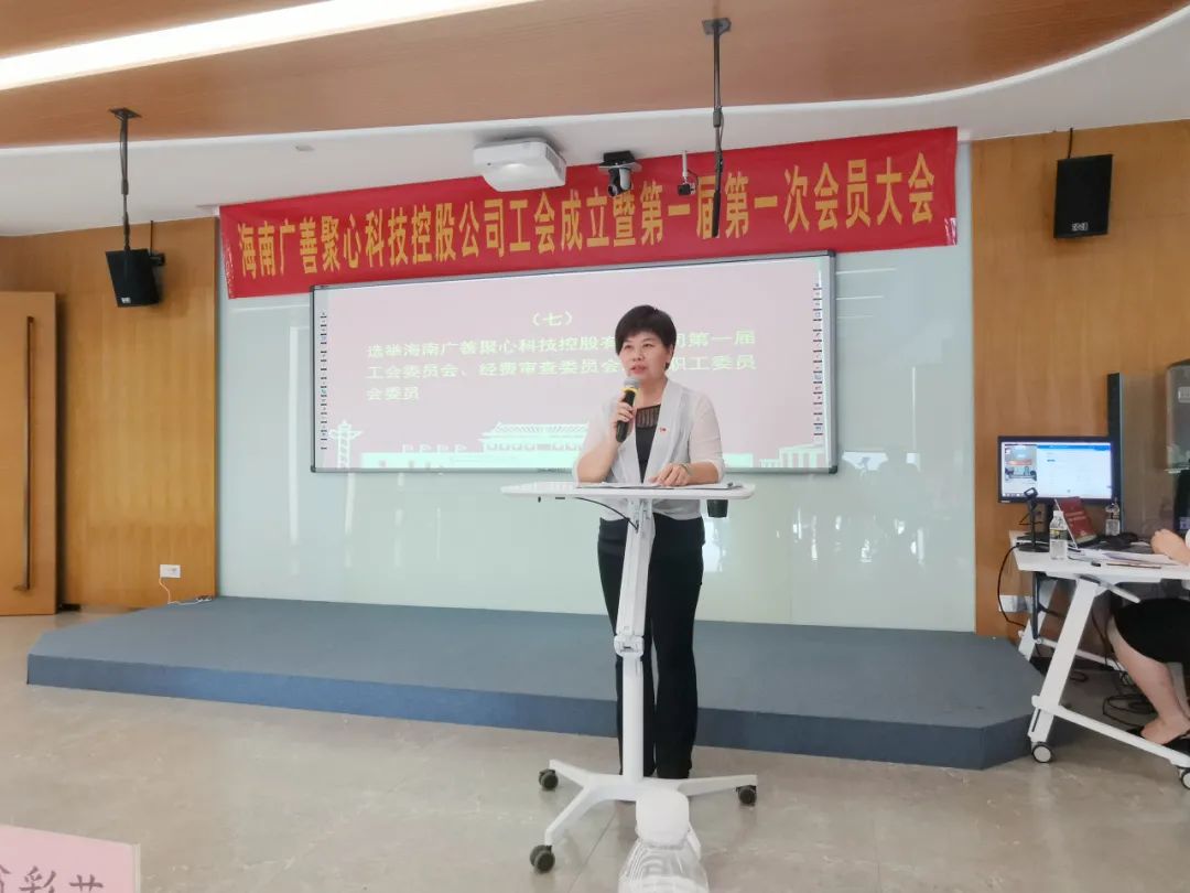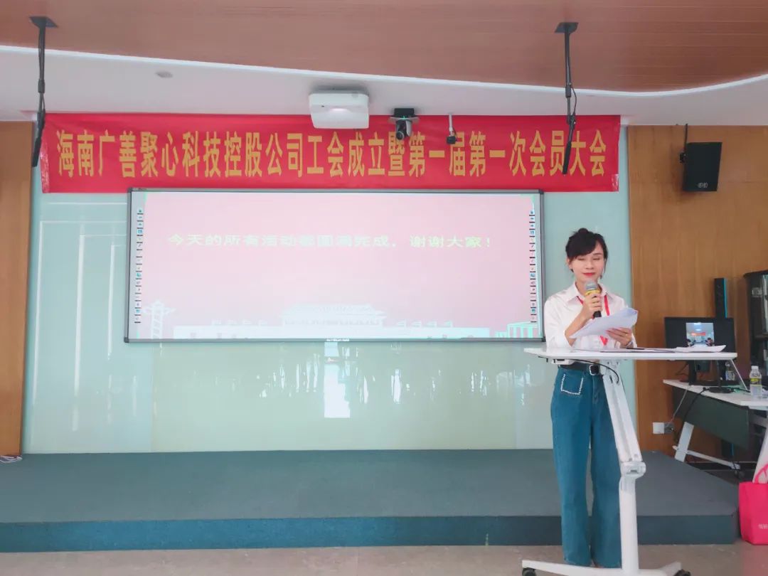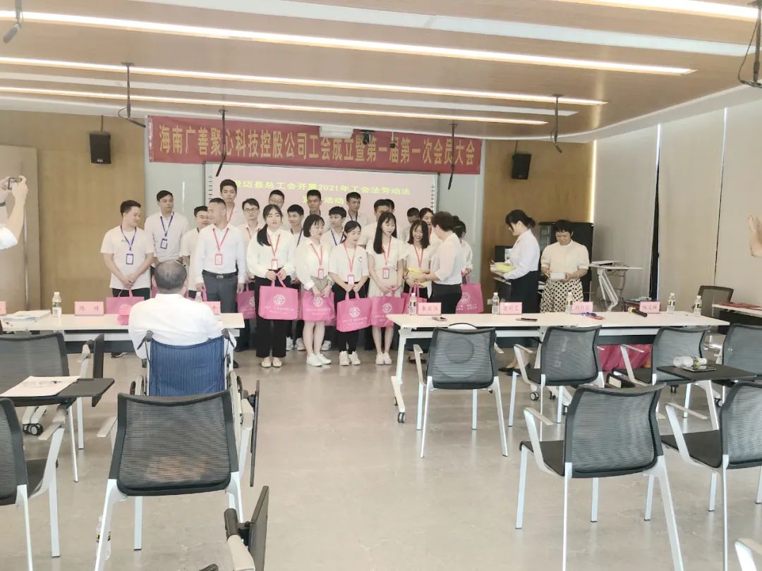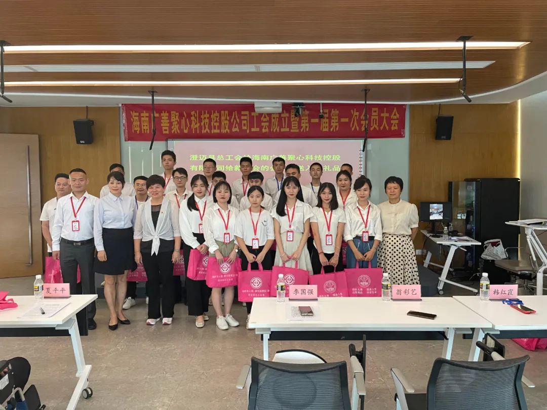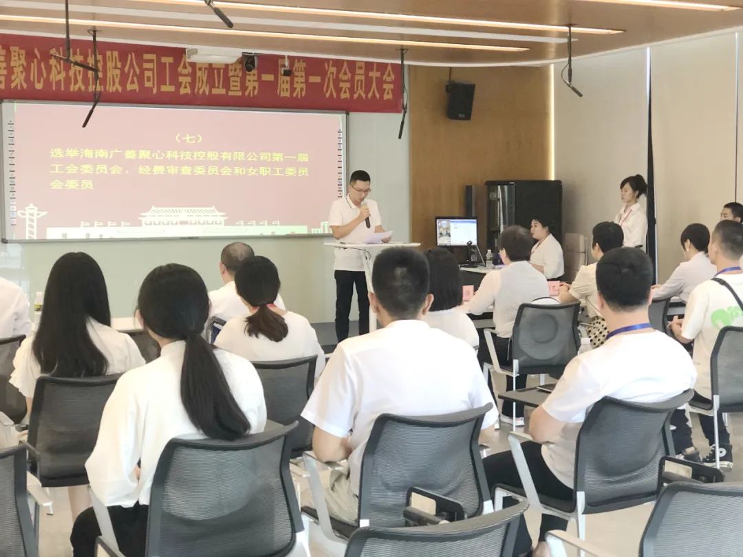 7月28日下午,在海南生态软件园召开海南广善聚心科技控股有限公司工会成立暨第一次会员大会,澄迈县总工会基层工作部部长李国强,海南老城经济开发区总工会主席翁彩艺,海南生态软件园党委办公室主任韩红霞,海南广善聚心科技控股有限公司人力总监夏平平出席大会,海南广善聚心科技控股有限公司全体会员参加。