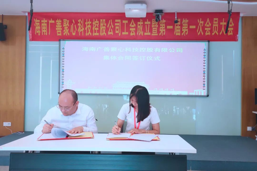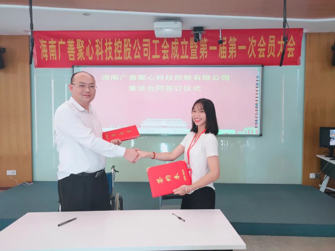 选举会议结束后,接着召开海南广善聚心科技控股有限公司第一届第一次职工大会,审议通过《海南广善聚心科技控股有限公司2021年集体协商合同》,并举行海南广善聚心科技控股有限公司集体协商合同签订仪式,为企业的集体协商和集体合同签订工作起到了典型示范作用。