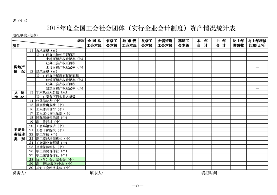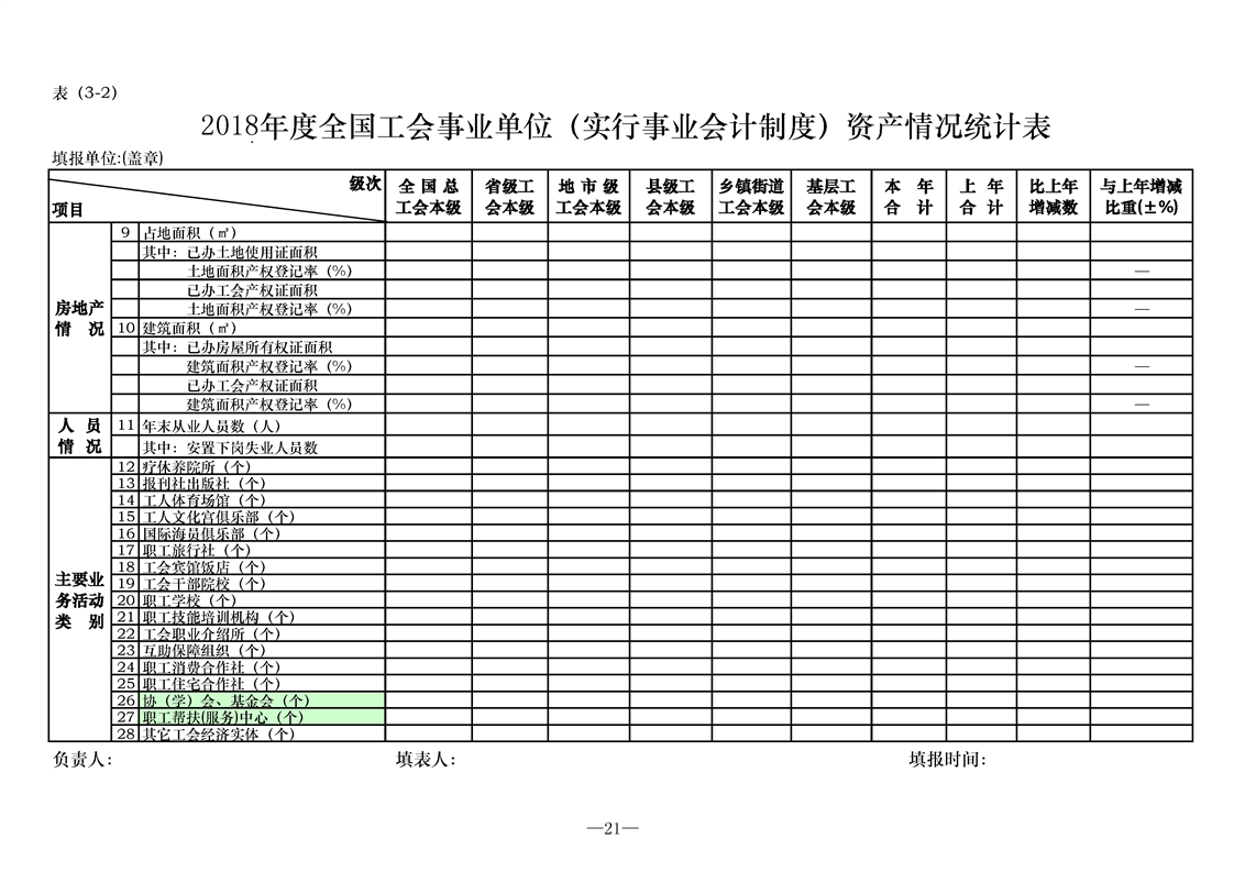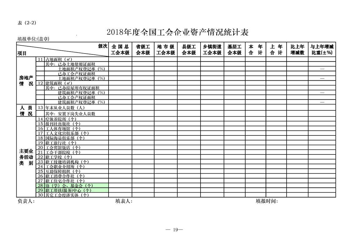 (二)企事业资产统计报表,包括《2018年度全国工会企事业资产情况统计汇总表》《2018年度全国工会企业资产情况统计表》《2018年度全国工会事业单位资产情况统计表》《2018年度全国工会社会团体资产情况统计表》和《2018年度全国工会