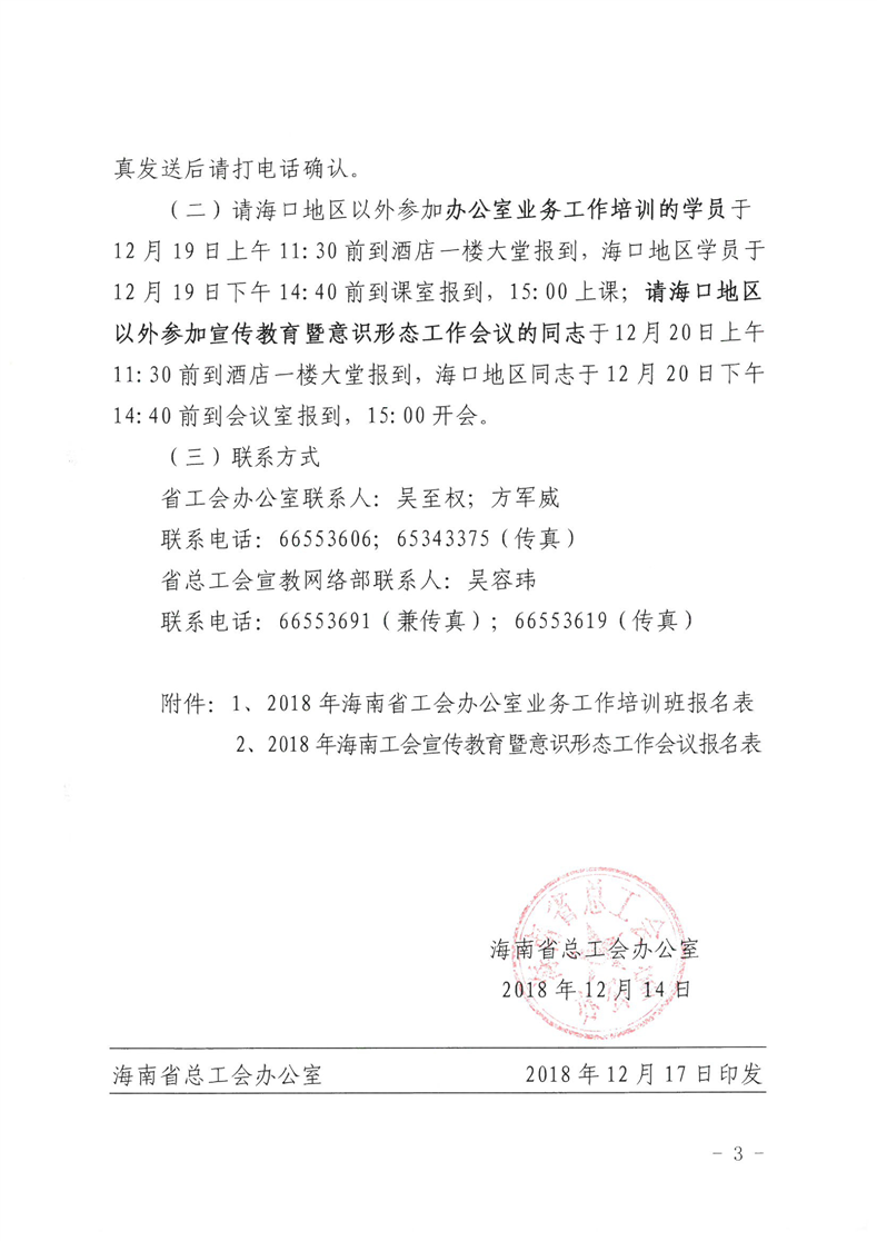 关于举办2018年海南省工会办公室业务工作培训班和宣传教育暨意识形态工作会议的通知(琼工办发〔2018〕181号)