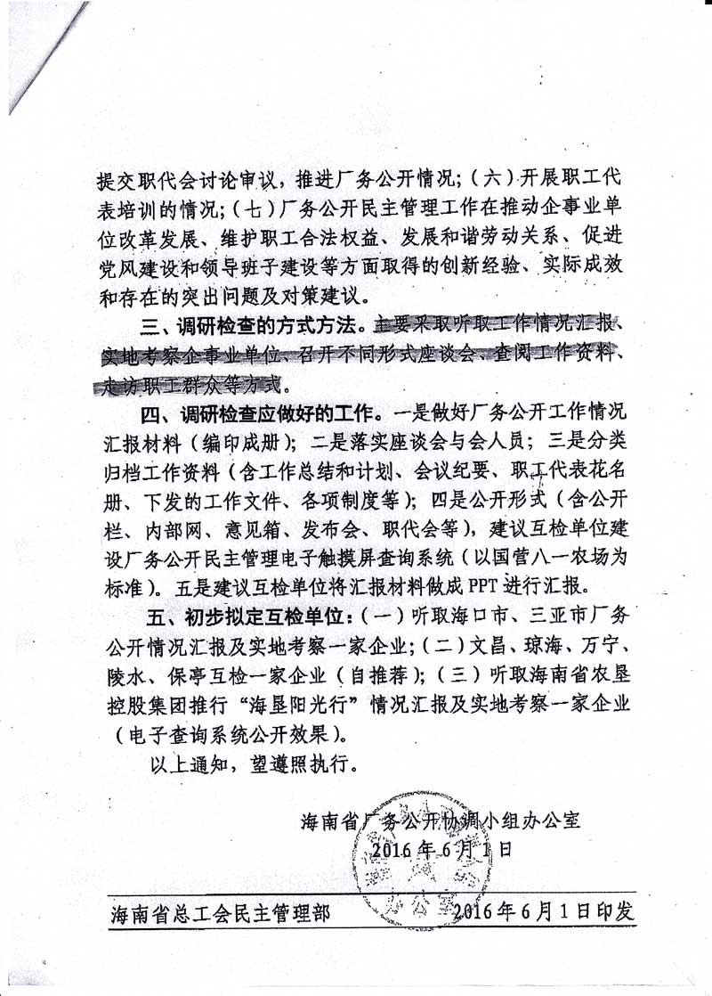 关于做好迎接第九次全国厂务公开民主管理工作调研检查的通知(琼厂开组办发〔2016〕4号)