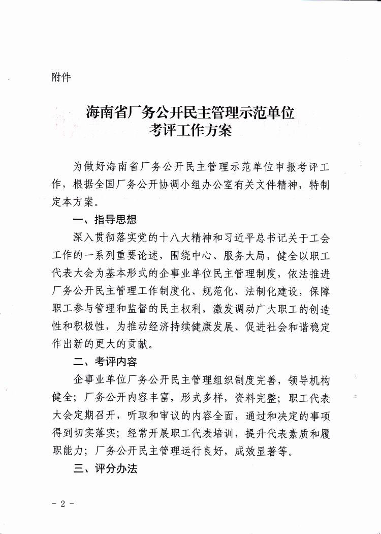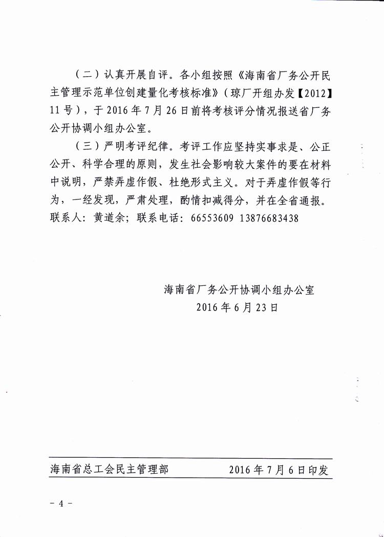 关于开展全省厂务公开民主管理示范单位考评的通知(琼厂开组办发〔2016〕5号)