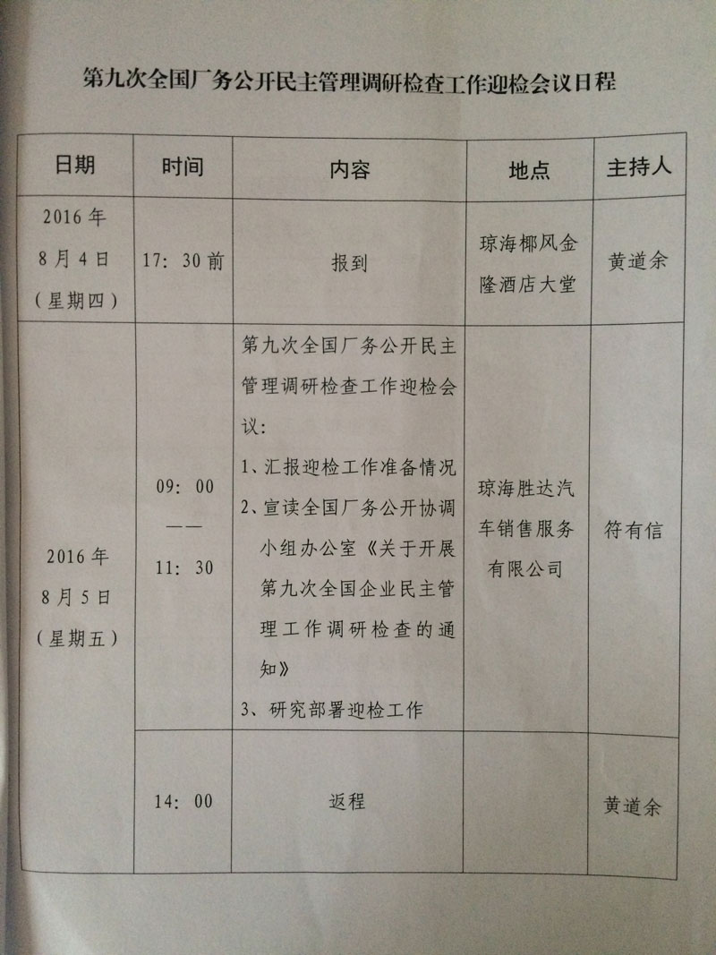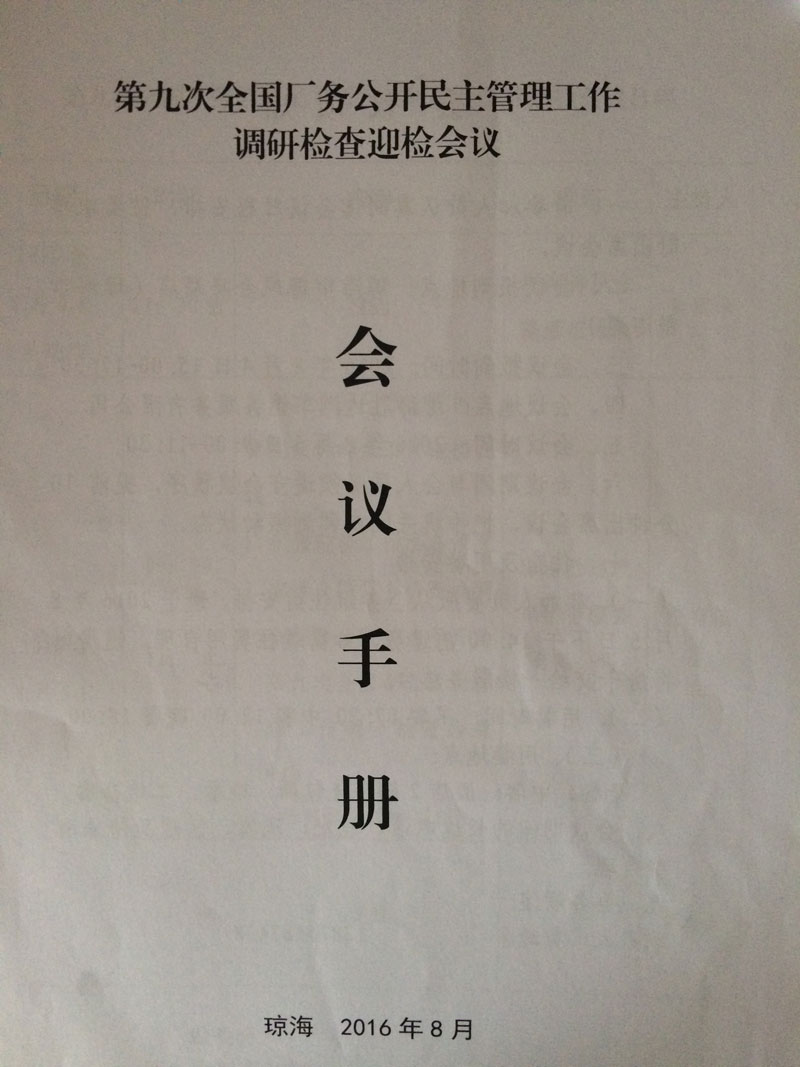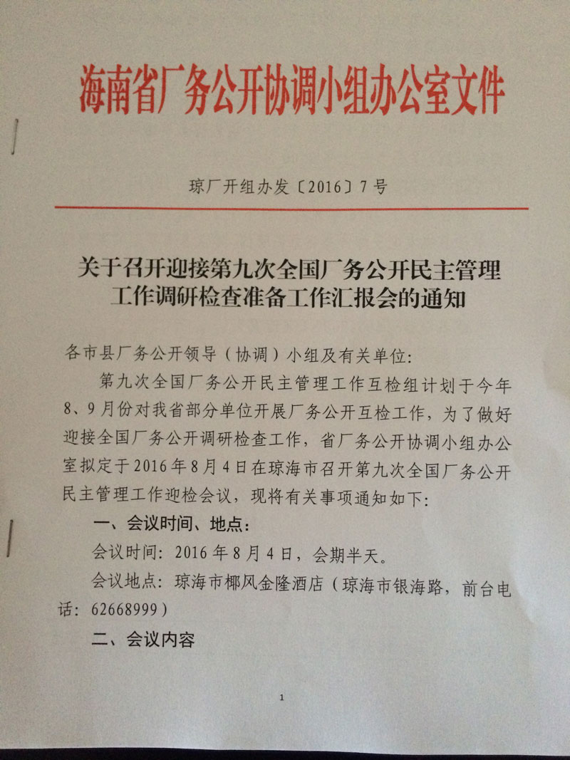 关于召开迎接第九次全国厂务公开民主管理工作调研检查准备工作汇报会的通知(琼厂开组办发〔2016〕7号)