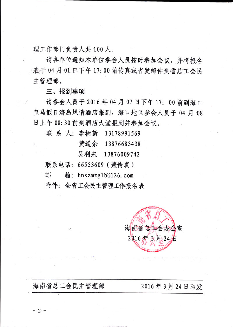 关于召开2016年全省工会民主管理工作会议的通知(琼工办发(2016)25号)